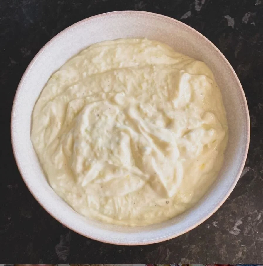 Blend olive oil and garlic together and add to yoghurt⠀⠀⠀⠀⠀⠀⠀⠀⠀